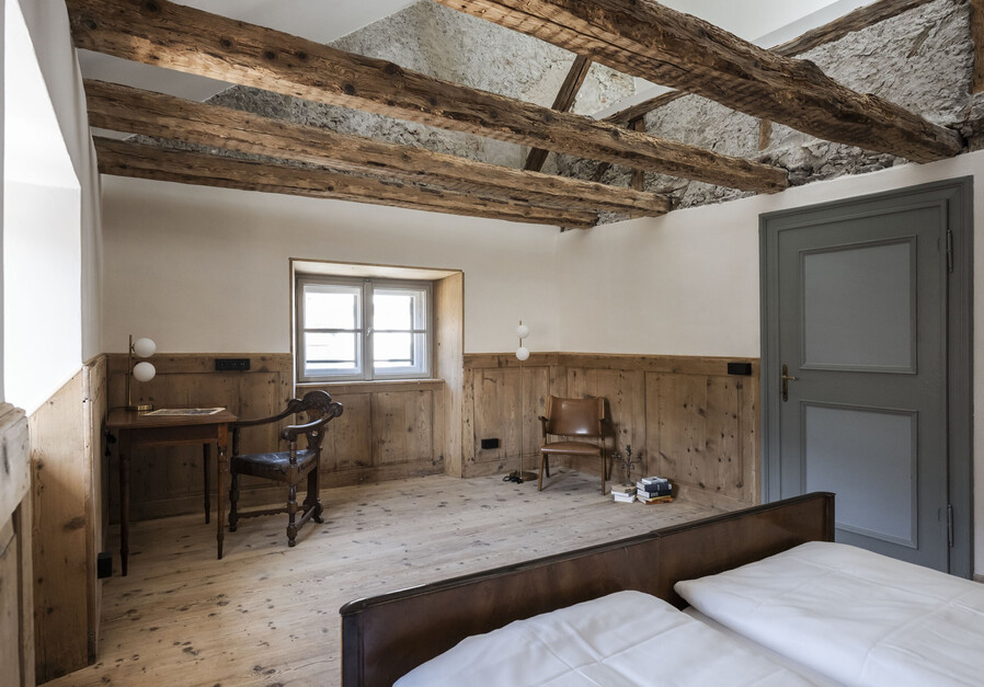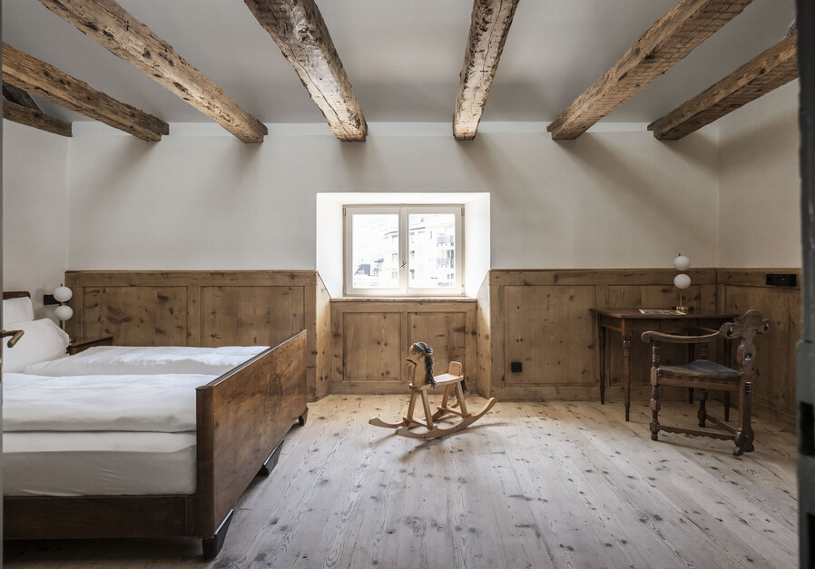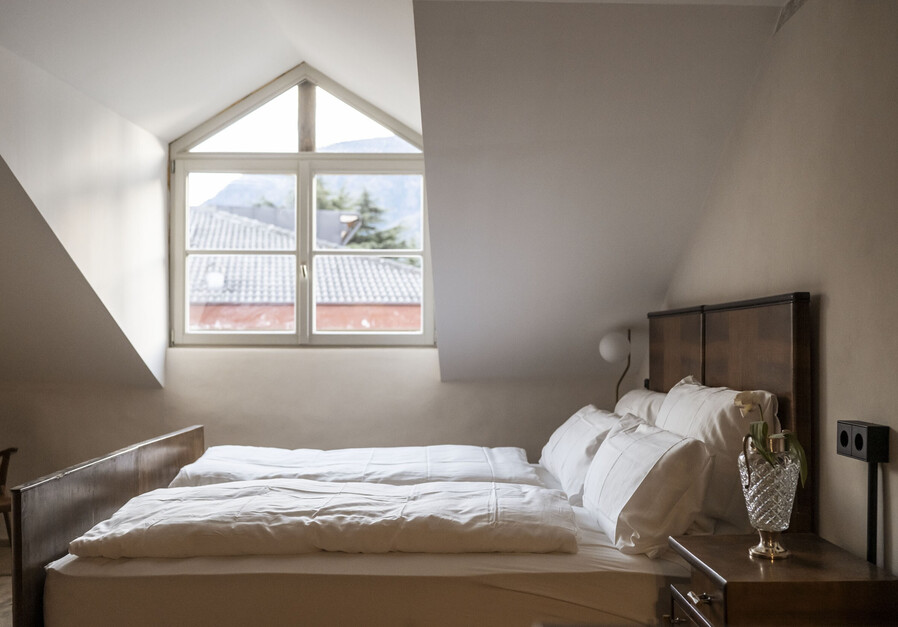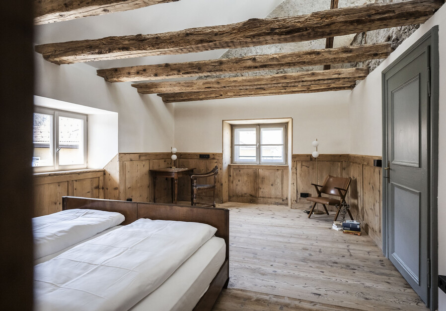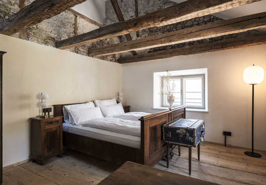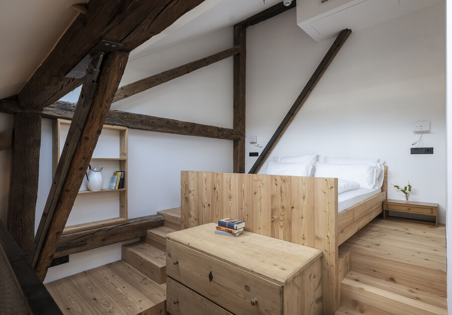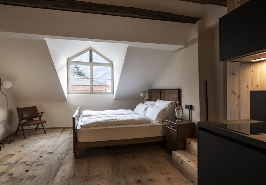 Die Josef Loft ist Thierburg’s größte Suite. Sie erstreckt sich über zwei Stockwerken. Im unteren Bereich befindet sich der Wohnbereich und eine Schlafcouch für 2 Personen, im großzügigem oberen Bereich hingegen befindet sich ein Doppelbett, eine Schlafcouch für 2 Personen und ein Einzelbett. Die großzügigen Dachfenster lassen sich öffnen, womit man einen freien Blick auf den Sternenhimmel hat.