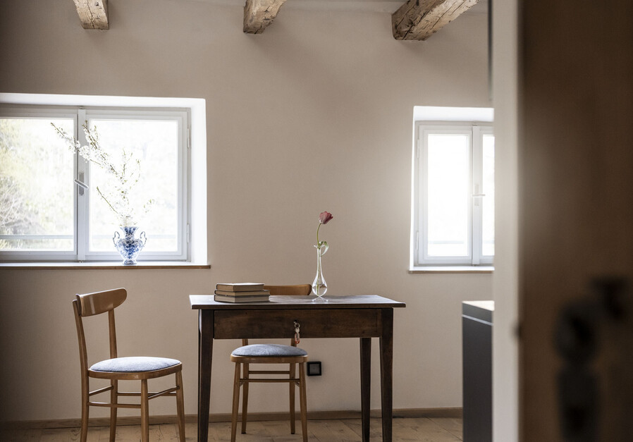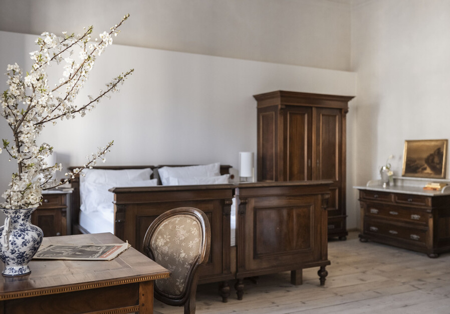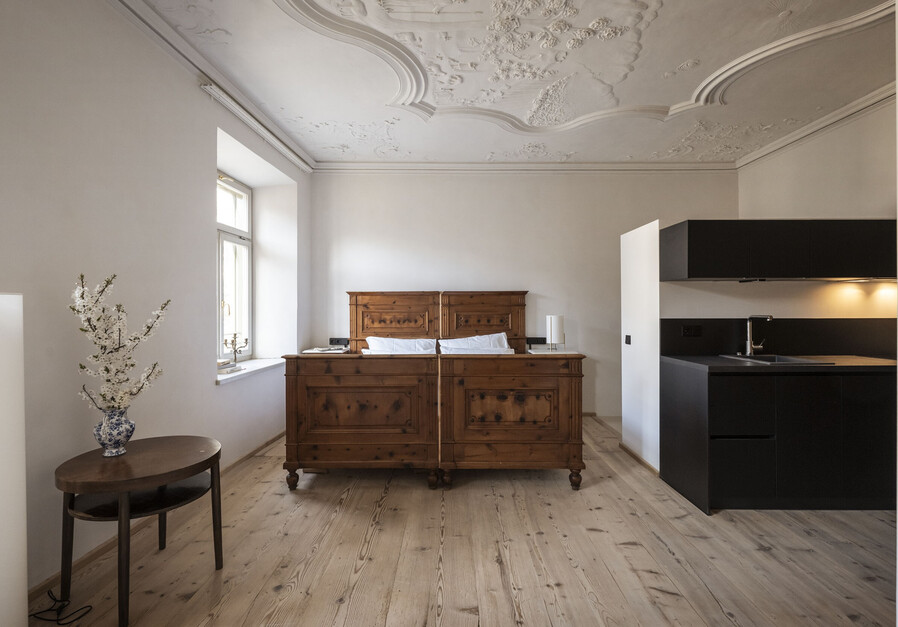 Unsere stilvollen Suiten verbinden historischen Charme mit modernem Komfort und bieten ein einzigartiges Wohnerlebnis. Hochwertige Ausstattung und liebevolle Details schaffen eine Atmosphäre zum Ankommen und Wohlfühlen.