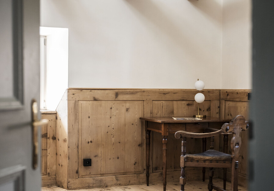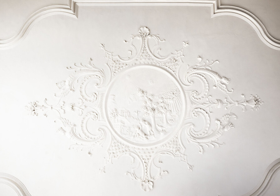 Das „schiane“ zu deutsch „schöne“ Zimmer verdankt seinen Namen der prunkvollen barocken Stuckdecke aus dem 18. Jahrhundert.