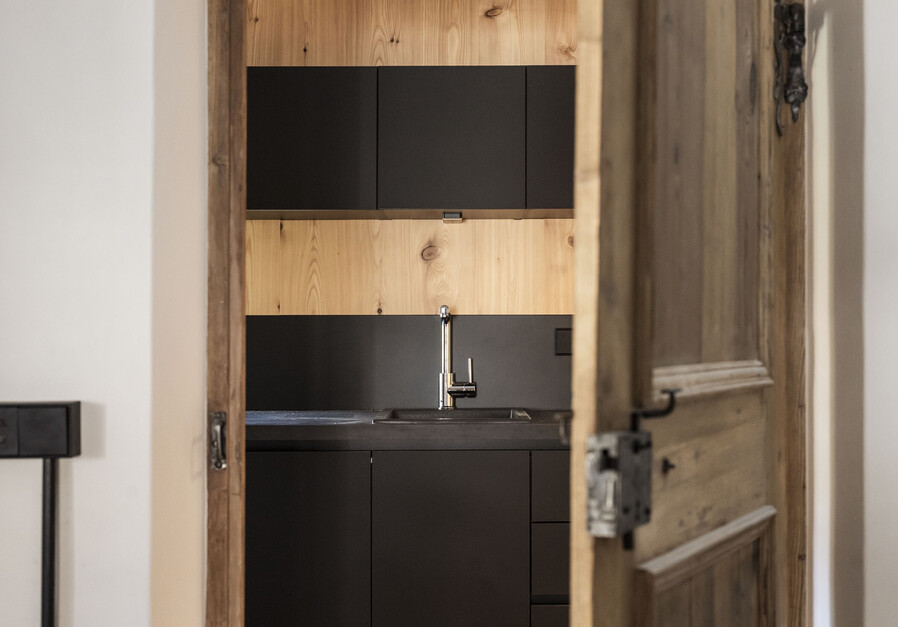 Die Christl Suite erstreckt sich über zwei Stockwerken. Unten befindet sich die Küche samt Wohnbereich, oben das Doppelbett. Die großzügigen Dachfenster lassen sich öffnen, womit man einen freien Blick auf den Sternenhimmel hat.
